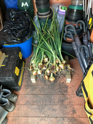 But we didn’t have much time to admire our handy work, with onions to pick and dry off and more top soil and compost arriving to top up our raised beds on the community plot. Luckily we have a great set of volunteers in the form of the ‘GC Crew’, who made swift work of the task in hand – thanks ladies!